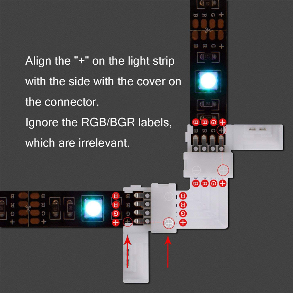Corner connector for WS2813, 5050 2835 3528 or any LED strip in size of 10mm width and of 4pins.